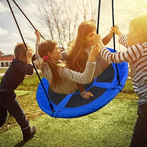 Large Saucer Swing: 40” diameter Saucer swing use thick steel frame and 900D oxford polyester(wear-resistant, UV-resistant) which is large and sturdy enough for your kids and their friends playing together. The tree swing includes 2 M9 connectors and 2 Pack 5ft tree straps, you can hang it on a swing set and tree. And we provide tree protectors that can protect trees and also avoid the tear of ropes, safer for the child to swing outdoor for a long time. Adjustable Hanging Ropes: Thick PE ropes have great tenacity and strength for various indoor and outdoor. Adjustable length between 47 and 66 inches. Easy Assemble: The saucer swing include step-by-step picture instructions and hardware, connect the steel frame and adjustable ropes, you can easily attach kids tree swing in minutes. Most of our customers also use it indoors, and use the hardware(not include) and fix it on the concrete structure. And comfortable sit and swing in all weather.