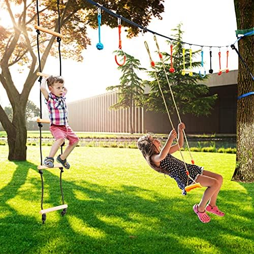 Price: (as of – Details) XIAPIA Slackline Warrior Obstacle Course for Kids-55FT Slackline with Swing Seat, Monkey Bars, Ring Wheel, Rope Ladder, Training Outdoor Playset & Backyard Jungle GymPlay Safe, Play Active: heavy duty slackline and durable accessories ensures that your kids is safety secured while challenging obstacle course and training. Each attachment can hold