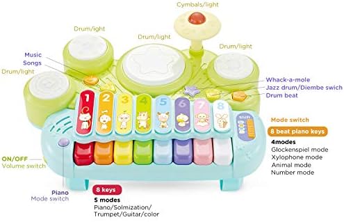 Ohuhu Multi-Function Toys Kids Drum Set, Discover & Play Piano Keyboard, Xylophone Set Electronic Learning Toys for Baby Infant Toddler Kids Children