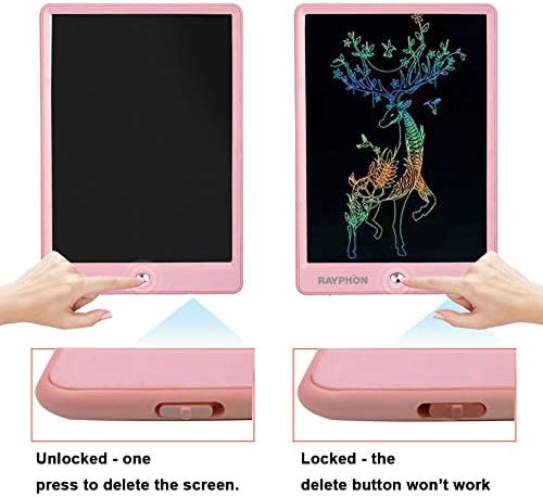 【 Excellent Drawing Board】 “ My kids love this light drawing tablet. They’re are so much fun. The kids love doodling and erasing with the push of a button. I like that there is no mess or accidental drawing on people, clothes, and objects like when they use crayons or pens or markers. We no longer spend your money on paper and pens. This drawing board like endless paper, you can painting, writing, doodling, taking note, even as a office memo board at anytime and anywhere. “ 【 Very Pleased with Drawing Tablet 】 “ Just what I was looking for! Easy to write on with included stylus pen, even includes a cord to attach to tablet. (which personally I found it a little difficult to do) Lock/Unlock switch saves your writing from any accident and just click a button to erase. Nice bonus with fabric sleeve for storing. ” 【 Encouraging My Kid to Study】 “ When my daughter studies for math, she wastes too much paper. I wanted to find a solution to not waste too much paper. This doodle pad was the perfect solution for it. It has fun color and kids like to write. Encourge them write more things and study instead of staring at their phones. ” 【 Safety And High-Tech Colorful Screen】 This writing pad adopt advanced 10 inches LCD colorful screen, there is no radiation and safe to use. The larger screen and brighter color, which can let the children display their incomparable imagination. The doodle board can be repeat to use at least 10,0000 times and battery can be used at least 8 months. This is perfect for road trip. I recommend it. ” 【 Easy to use for kids or adults 】 “ I bought this as a Christmas gift so I only opened it to see it and make sure it was ok. It came in a box that I can just wrap with paper and it is ready. It is a neat little tablet that I bought for my granddaughter but when my daughter found it she said she wanted one for making notes and lists. It is easy to use and comes with it’s own stylus so you are ready to use it out of the box. ”