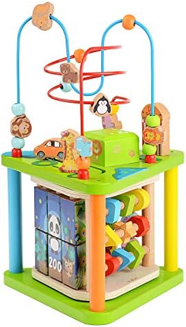 Splint 8 Activities: The activity cube keeps child entertained with interesting bead maze, recognizing animals, spinning gear and multifaceted animal puzzle Natural Material: Cut from solid wood, sanded smooth, and finished with safe, water-based paints; Non-toxic finishes and child safe materials Nice Gift Toy: Best choice as kids’ birthday gift, which is also a good parent-child game that can promote family harmony Educational Learning Toy: Encourage your child to recognize shapes, colors, words, characters and develop imagination, hand-eye coordination and problem solving skills No Assembly Required: The height is suitable for sitting kids to play; Don’t need to assembly, there will be no fragments